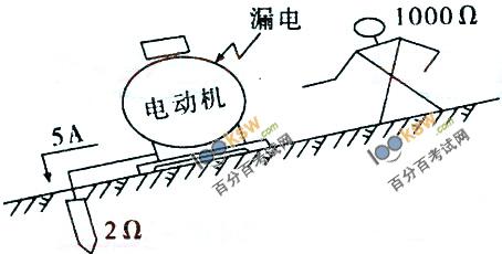 11.對于T頻電流,人的感知電流約為0.5~1mA、擺脫電流約為5~10mA、室顫電流約為50mA。某事故現場如下圖所示,電動機接地裝置的接地電阻為2Q;該電動機漏電,流過其接地裝置電流為5A;地面十分潮濕。如果電阻l000Q的人站在地面接觸該電動機,可能發生最嚴重的情況是( )。