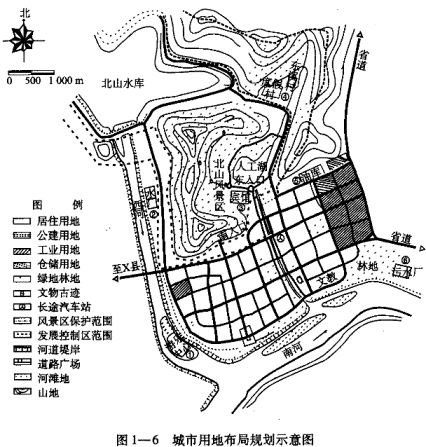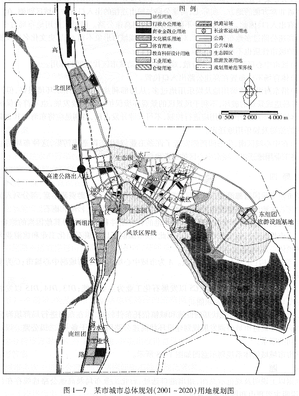 | 3.某城市位于我國西南部,是中國航天城,省級歷史文化名城及旅游服務基地。規劃人口50萬人。城市周邊群山起伏,東南有東海(高原湖邊),是一個風景區和風景旅游地,根據風景區及生態園建設和保護要求,沿海岸線80m為建設控制地帶。城市的對外交通有一條高速公路108國道、電氣化鐵路及機場。城市結構呈"兩片四點"放射狀城市組群。"兩片"是指構成中心城區的兩片,"四片"是分散的四個組團。 該城市總體規劃如圖1-7所示。 ![]() 分析該規劃中主要存在哪些問題。 |