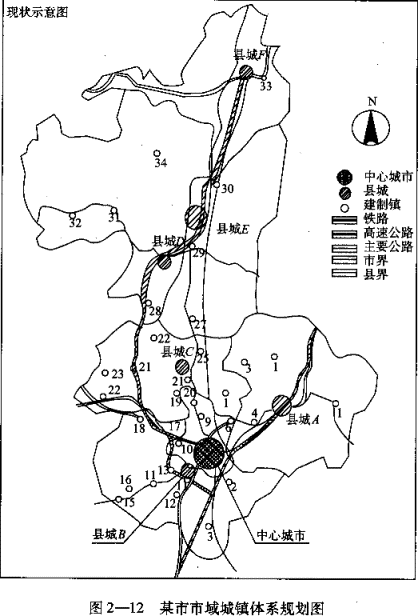 2.我國西南地區(qū)某地級市,其南部為丘陵,北部為山區(qū),山區(qū)經濟以農林為主。受地形條件影響,城鎮(zhèn)主要集中在南部和中部地帶,市域城鎮(zhèn)化水平在35%左右,市域內現(xiàn)有大城市1個,縣城6個,其他建制鎮(zhèn)34個,規(guī)劃為求市域內城鎮(zhèn)均衡發(fā)展,在北部地區(qū)新設3個鎮(zhèn),市域交通規(guī)模基本符合發(fā)展要求。其規(guī)劃示意圖如圖2-12所示。![]() 試結合現(xiàn)狀和規(guī)劃示意圖,指出該市在城鎮(zhèn)等級布局和主要交通線路規(guī)劃中存在的主要問題,并簡要說明理由。 |