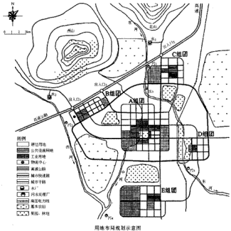 | 3.某地級市總體規劃確定,主城區在現狀基礎上仍分為5個組團,該市地勢西北高、東南低,有3條河流,主導風向東北風,主城區現狀常住人口60萬人,規劃為90萬人(見現狀圖和規劃示意圖)。 規劃要點如下。 1.城市性質:省城北部區域中心城市,新型工業基地。 2.總體布局:為"二主三副"的組合型布局結構,"二主"為A、E組團,"三副"即B、C、D功能組團,各組團之間保留農田和生態綠地進行分隔。 3.道路交通:增建高速公路出入口 ,規劃連接各組團的城市快速路系統。4.工業布局:規劃4處工業區,在A組團安排機械制造和生物制藥園區,C組團安排新型建材及水泥廠,E組團為電子信息高新技術園區,D組團安排物流中心。 5.在組團隔離帶內留出高壓電力線走廊,新規劃1個水廠,4個污水處理廠。 試指出上述規劃中不合理之處,并簡要說明理由。 ![]() ![]() |