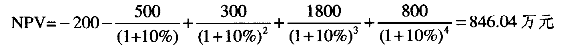 | 4.某房地產投資項目總投資1000萬元,第一年年初投入200萬元,第一年、第二年年末分別投資500萬元和300萬元,第三年、第四年年末銷售收入分別為1600萬元和800萬元,行業基準收益率為10%,則凈現值為( )萬元。 |