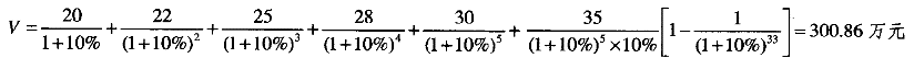 | 5.某宗房地產的收益期限為38年,通過預測得到其未來5年的凈收益分別為20萬元、22萬元、25萬元、28萬元、30萬元,從未來第6年到第38年每年的凈收益將穩定在35萬元左右,該類房地產的報酬率為10%,該宗房地產的收益價格為( )萬元。 |
