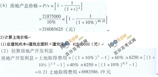 根據(jù)所給資料,首先采用收益還原法評估不動產(chǎn)總價,然后采用剩余法評估