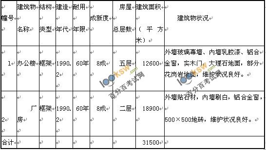 估價對象所在WY6 -3 - 14號宗地上已建有兩幢房產,總建筑面積31500平方米。建筑容積率為0. 63,建筑密度為42%,綠地率約為30%。于2007年6月19日進行了產權登記,取得了×房權證×字第××號《房屋所有權證》。