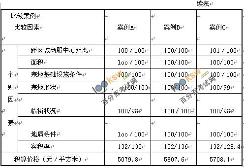 ( 257) 將估價對象各項影響因素與比較案例的各項影響因素相比較,按市