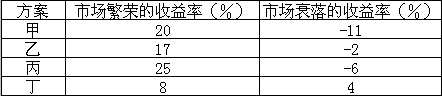 假定開發商李某在甲、乙、丙、丁四種方案之間做出選擇,每種方案郛有風險和收益,但每種方案的收益事先不確定,都面臨繁榮和衰落兩種可能出見的市場狀態,在每種市場狀態下四種方案的收益都不相同,為了確定哪種方案妻好,開發商列出了每種方案不同市場情況下的收益表(見下表)。按照不同的決策方法,試回答以下108-110題的問題:![]() |