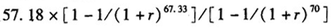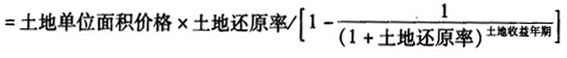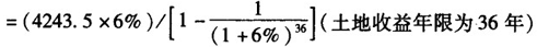 | 正確答案: 1.適用公式 土地價格=土地純收益/土地還原率×[1-1/(1+土地還原率)土地收益年期] 土地純收益=房地純收益-房屋純收益 房屋純收益=房屋現值×房屋還原率 2.計算步驟 (1)選擇計算方法。根據題意,估價對象為有收益土地,適用于收益還原法評估。 (2)計算房地年總收益。采用客觀租金,寫字樓自用部分也應計算收益。即: 房地建筑面積月租金=60+5=65(元/m2) 房地年總收益=建筑面積月租金×月份數×建筑面積×(1-空置率) =65×12×15000×(1-10%)=1053(萬元) (3)計算房地年總費用。 年營業稅=房地年總收益×5%=1053×5%=52.65(萬元) 年管理費=房地實有建筑面積總租金×3% =65×12×15000×3%=35.1(萬元) 年維修費=重置價×2%=2500×15000×2%=75(萬元) 年保險費=重置價×0.2%=2500×15000×0.2%=7.5(萬元) 年房產稅=原造價×70%×1.2% =2300×15000×70%×1.2%=28.98(萬元) (這里取原造價,即2300元/m2) 房屋年折舊費=(房屋重置價-殘值)/49 =(2500-0)×15000/49=76.53(萬元)(殘值為零) 房地年總費用=營業稅+管理費+維修費+房產稅+房屋年折舊費 =52.65+35.1+75+7.5+28.98+76.53=275.76(萬元) (4)計算房地年純利益。 房地年純收益=總收益-總費用=1053—275.76=777.24(萬元) (5)計算房屋現值。 房屋現值=房屋重置價-房屋年折舊費×已使用年期 =2500×15000-765300×2=3596.94(萬元) (6)計算房屋年純收益。 房屋年純收益=房屋現值×房屋還原率 =3596.94×8%=287.76(萬元) (7)計算土地年純收益。 土地年純收益=房地年純收益-房屋年純收益 =777.24-287.76 =489.48(萬元) (8)計算2004年11月1日的土地使用權價格。 土地使用權價格=(土地年純收益/土地還原率)×[1-1/(1+土地還原率) ]=(489.48/6%)×[1-1/(1+6%) ]=7599(萬元)單位面積地價=75990000元/12480 =6089(元/m2) |