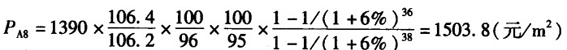 | 正確答案: 1.適用公式 估價對象土地價格=比較案例土地價格×交易情況修正×日期修正×區域因素修正×個別因素修正×年期修正 土地市場年租金 ![]() 2.計算步驟 1)測算乙公司所占用的土地總價 (1)選擇計算方法。根據本題所提供的資料,采用市場比較法評估。 (2)選擇比較實例。根據估價對象條件,按照同一供需圈、用地類型相同、交易類型相同或相近、交易時間相近等要求,選擇交易案例A2、A7、A8作為比較實例。 (3)確定比較因素,進行因素修正。因估價對象與各比較實例均為正常交易,不需進行交易情況修正,故修正因素主要有交易日期、區域因素、個別因素和土地使用年期。 ①編制交易日期修正指數表,根據題目所給條件,交易日期修正指數表如下。 ![]() ②編制區域因素修正指數表如下。 ![]() ③編制個別因素修正指數表如下。 ![]() ④確定年期修正公式。 年期修正系數= (m為待估宗地的使用年期,n為比較實例的使用年期)![]() ![]() ![]() ![]() (5)計算估價對象土地價格。 樓面地價=(1303.2+1436.5+1503.8)/3=1414.5(元/m2) (6)計算土地總價。 乙公司擁有的建筑面積為:4000×3/6=2000(m2) 土地總價=建筑面積×樓面地價=2000×1414.5=282.9(萬元) 2)計算乙公司應分攤的土地面積 按建筑面積分攤: 分攤比例=市場建筑面積/總建筑面積=2000/12000=1/6 分攤土地面積=4000×1/6=666.67(m2) 3)測算單位土地面積的市場年租金 題目未明確租賃費用問題,在此假定年凈租金即市場年租金: 單位面積地價=土地總價/分攤后的土地面積 =2829000/666.67 =4243.5(元/m2) 由公式: ![]() 得: ![]() ![]() =290.2(元/m2) |