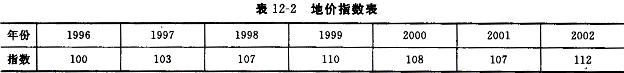 2.有某市一待估宗地G需評估,現收集到與待估宗地條件類似的6抉宗地,具體情況見表12-1。![]() 該市地價指數見表12-2。 ![]() 另據調查,該市此類用地容積率與地價的關系比為:當容積率在1~1.5之間時,容積率每增加0.1,宗地單位地價比容積率為1.0時的地價增加5%;超過1.5時,超出部分的容積率每增加0.1,單位地價比容積率為1.0時的地價增加3%。對交易情況、區域因素、個別因素的修正,都是案例宗地與被估宗地比較,表12-2中負號表示案例宗地條件比待估宗地差,正號表示案例宗地條件優于待估宗地,數值大小代表對宗地地價的修正幅度。 試根據以上條件,評估宗地G2002年的價格。 |