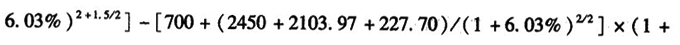 | 正確答案: 第一步:采用成本逼近法計算土地使用權現值。 (1)土地取得費=20萬元/畝=300(元/m )(2)土地開發費=2億元/km =200(元/m )(3)計算利息: 300×[(1+12%) -1]+200×[(1+12%) -1]=47.67(元/m )(4)計算開發利潤: (300+200)×15%=75(元;/m )(5)成本地價=(1)+(2)+(3)+(4)=622.67(元/m )(6)土地出讓增值收益=622.67×15%=93.40(元/m )(7)計算土地使用權現值。 目前剩余年期為45年,即土地使用權現值為: (622.67+93.40)×[1-1/(1+10%) ]=706.25(元/m )(8)土地使用權總價=706.25×2000=1412500(元) 第二步:用重置成本折舊法計算房屋現值。 因為出讓期滿,土地及地上建筑物由政府無償收回,使用者得不到殘值。因此,全部重置價必須在使用年期內折舊完畢。 年折舊費=重置價/耐用年限=1500×2500/48=78125(元) 房屋現值=重置價一年折舊費×已使用年限 =1500×2500-78125×3=3515625(元) 第三步:計算房地產現值。 房地產現值=土地使用權現值+房屋現值 =1412500+3515625=4928125(元) |