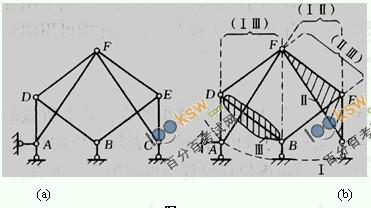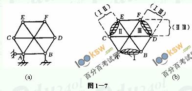[例1-4] 分析圖1-7(a)所示體系的幾何組成。
