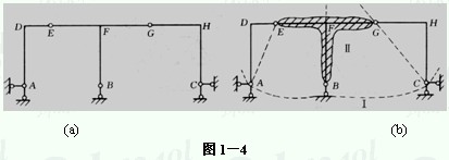 [例1-1] 分析圖1-4(a)所示體系的幾何組成。