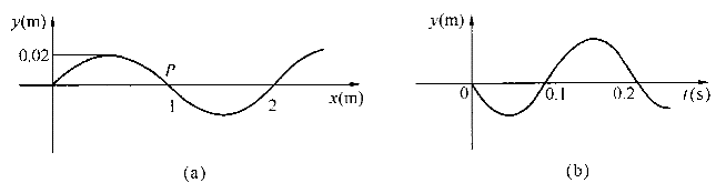 4.由圖(a)t=0時的波形圖和圖(b)P點處振動圖,可得波動方程為( )。![]() |