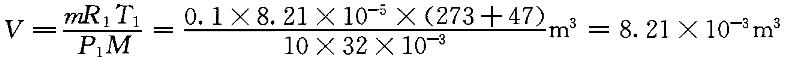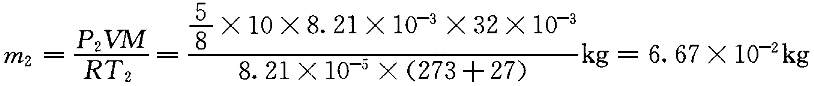 | 5.某容器內裝有質量為0.1kg,壓強為10atm,溫度為47℃的氧氣,因容器漏氣一段時間后壓強減少為原來的5/8,溫度變為27℃,則漏出氧氣的質量為( )。 |