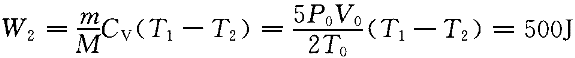 正確答案:C 解題思路:【解析】由等壓過程方程V /T =V /T 得,等壓膨脹過程后,氣體的體積為:V =(V /T )T ;所以,等壓過程中氣體對外做的功W =P (V -V )=200J;又將m/M=P V /RT 和C =(5/2)R,代入絕熱過程做功公式,得絕熱過程做的功為: 所以,整個過程做功為W=W +W =700J【點評】在等壓過程中,狀態方程為V /T =V /T ,功的公式為, 。在絕熱過程中,狀態方程為 常數, 常數, 常數,功的公式:W=m/M·(i/2)R·(T -T ),或W=P V -P V /r-1。只有分清在什么過程中運用哪個公式,才可以正確解答本題。 |