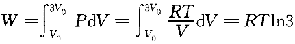 正確答案:B 解題思路:【解析】等溫過程氣體做功為 =8.31×298×1.0986=2.72×10 J【點評】做此題時最主要的是要熟記氣體做功公式 ,由PV=(m/M)RT解出壓強P,代入求積分即可。 |