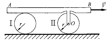 1.兩輪半徑均為r,板AB擱置在Ⅰ輪上,并在0點處與Ⅱ輪鉸連。已知板的速度為移。設各接觸面處無相對滑動,試問兩輪的角速度之間的關系為( )。![]() |