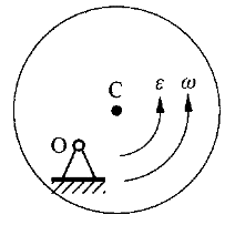 圖示質量為m,半徑為R的均質圓盤C繞。軸在鉛垂平面內作定軸轉動,偏心矩OC=R/2,該瞬時圓盤的轉動角速度為ω,角加速度為ε。![]() |