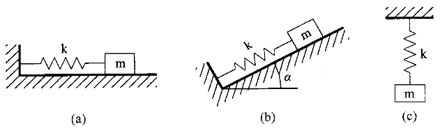5.圖示三個振動系統中,物塊的質量均為m,彈簧的剛度系數均為k,摩擦力與彈簧的質量均不計,則(a)、(b)、(c)三種情況中物塊的自振圓頻率國之間的關系為( )。![]() |