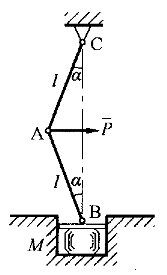 曲柄式壓榨機ABC在圖示位置處于平衡。![]() |