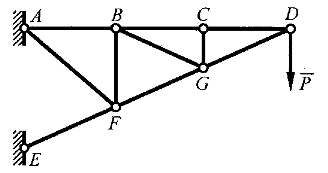 | 正確答案:C 解題思路:【解析】根據(jù)節(jié)點平衡的特殊情況,可依次判斷出結(jié)構(gòu)中CG、GB、BF、FA均為零桿。 【點評】本題主要考察用節(jié)點法分析桁架結(jié)構(gòu)內(nèi)力,以及零桿的概念。 |