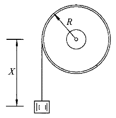 1.如圖示,半徑R=10cm的鼓輪。由掛在其上的重物帶動而繞0軸轉(zhuǎn)動,重物的運動方程為x=100t (x以米計,t以秒計)。則鼓輪的角加速度ε為( )。 ![]() |