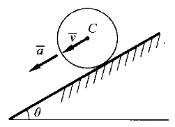 半徑為R、質(zhì)量為m的均質(zhì)圓輪沿斜面作純滾動如圖示。已知輪心C的速度為 、加速度為 。![]() |
