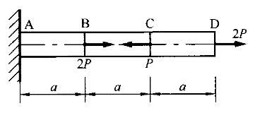 等截面直桿承受軸向外力作用,如圖所示。桿的抗拉(壓)剛度為EA。![]() |