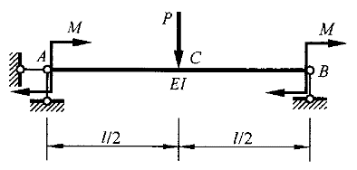 5.圖示簡支梁截面抗彎剛度為EI,集中力偶M作用于A、B點,則集中力P作用點C處的撓度fc為( )。![]() |