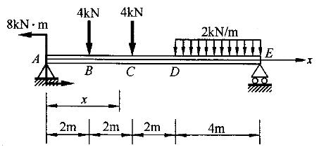 簡支梁受下圖所示荷載作用。![]() |