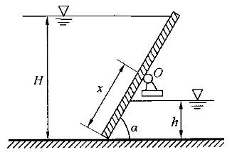 2.如圖所示為可繞固定鉸鏈0旋轉的自動開啟式傾斜閘門,閘門和水平面的夾角為60°。當H=2m,k=0.4m時,要求閘門能夠自動開啟,則鉸鏈至閘門下端的距離x為( )。![]() |