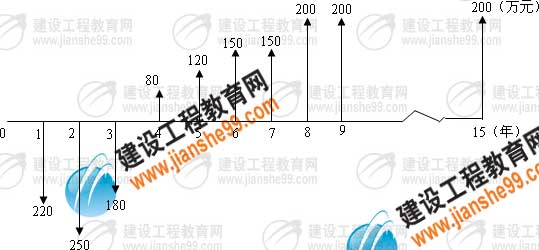39.某項目投資方案的現金流量如下圖所示,從投資回收期的角度評價項目,如基準靜態投資回收期Pc為7.5年,則該項目的靜態投資回收期( )。