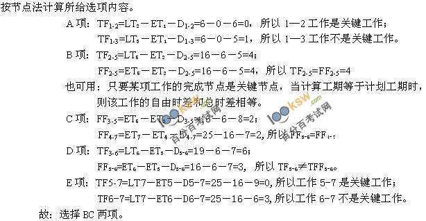 【解析】根據選項,首先按節點編號逐個節點進行,即可找的有兩個終點節點⑦和⑧;箭頭節點編號②小于箭未節點編號③,即為節點編號有誤;其它選項均無。所以選擇BD兩項。