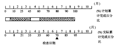 4.某工作的實際進度與計劃進度如下圖所示,在第6月末進行檢查時發現( )。![]() |