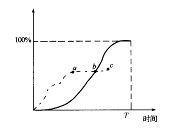 7.下圖為某工程項目的S形曲線,其中實線為計劃S形曲線,點劃線為實際S形曲線。圖中a、b、c三點所提供的信息是( )。![]() |