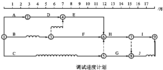 5.由于工作C的總時差有7天,而工作B總時差只有3天,工作H是關鍵工作,總時差為零,且由于工作關系必須放在工作C之后,所以應將原計劃中平行工作的工作B、C中的工作C置于工作B之后,即應按B-C-H順序安排最為合理。該專業調試組在調試中最少的間斷時間為:ES-(LF+D)=11-(6+4)=1天。