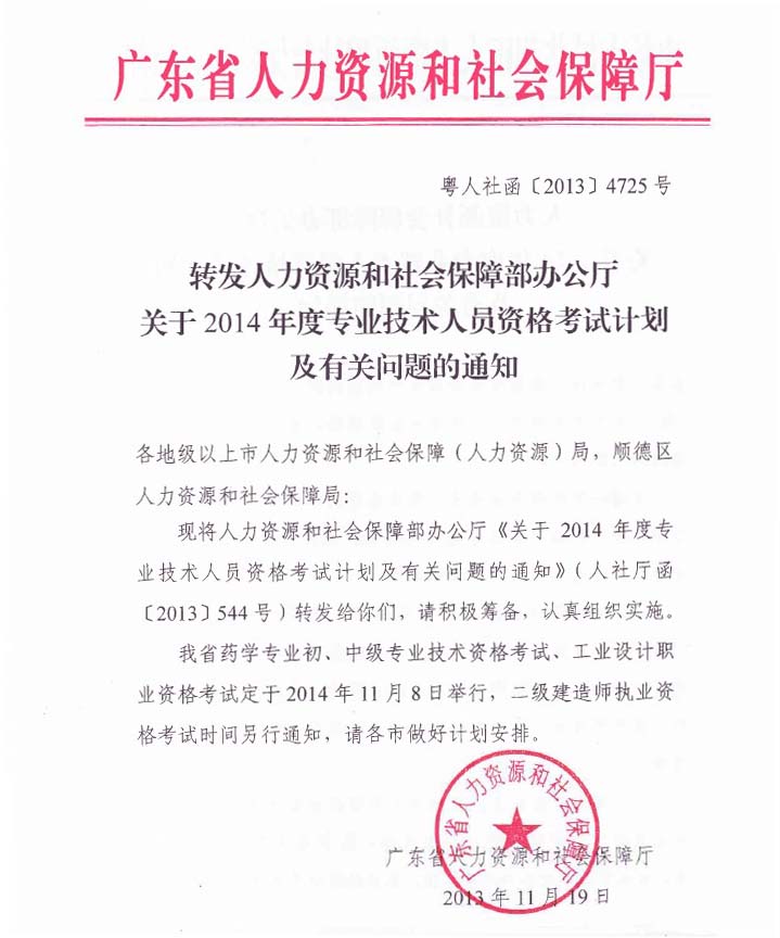 廣東2014年一級建造師考試計劃有關(guān)問題通知