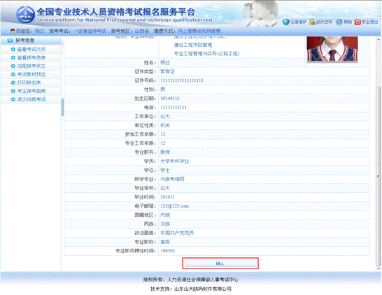 重要提示:報名信息一旦確認就不能更改,請考生仔細核對后再進行報名信息確認操作。