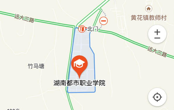 1、湖南都市職業學院正門(長沙縣黃花鎮遠大三路黃花國際空港工業園黃花大廈對面)