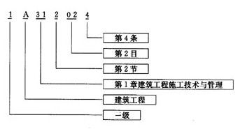 《一級建造師執業資格考試大綱》對專業、級別以及章、節、目、條用編碼的形式表示,編碼長度為8位。具體說明如下: