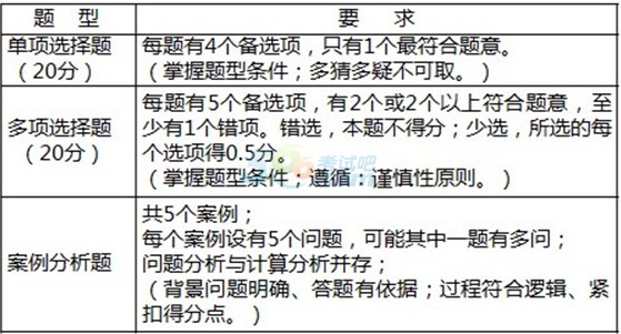 專業科目的題型分為單項選擇題、多項選擇題和綜合(案例)分析題。