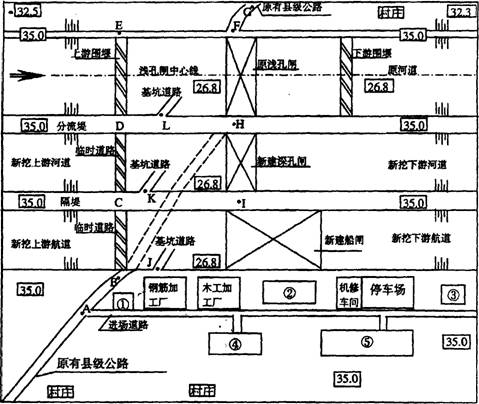 (3)新建一座船閘。主要內容包括:閘室、公路橋、新挖上、下游航道等;