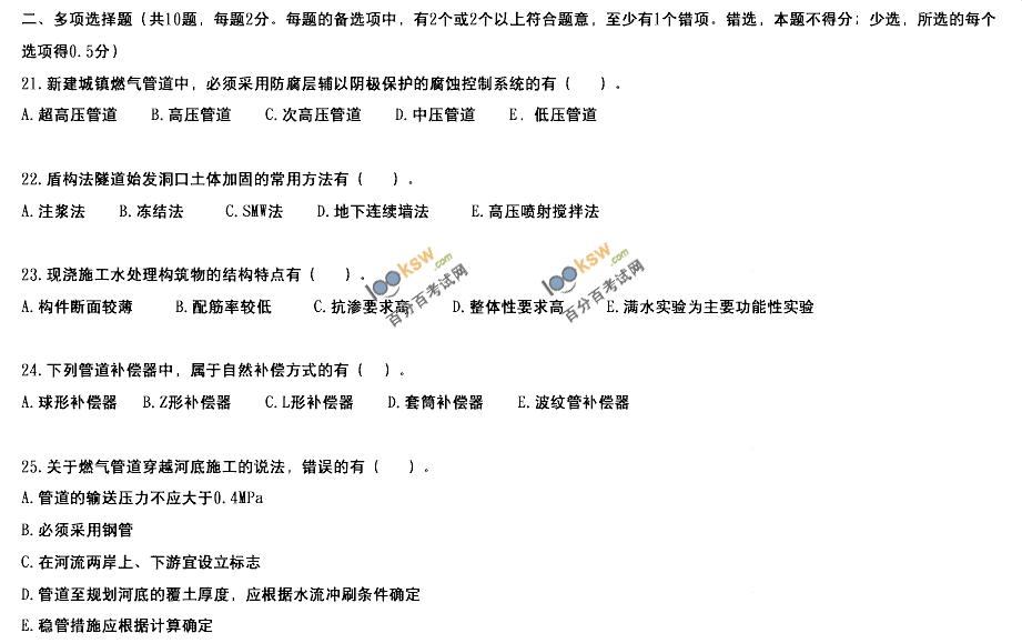 2012年一級建造師《市政公用工程》真題答案解析3