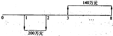 4.某投資方案各年的凈現金流量如下圖所示,試計算該方案財務凈現值,并判斷方案的可行性(ic=10%),( )。(P/A,10%,2)=1.7355;(P/A,10%,6)=4.3553;(P/F,10%,2)=0.8264![]() |