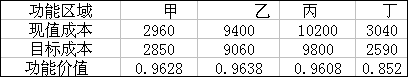 4.項目的土建工程可劃分為甲、乙、丙、丁四個功能區(qū)域,各功能現(xiàn)實成本和目標成本如下: