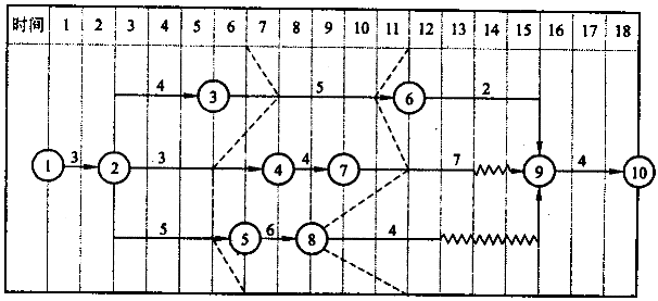 | 11.【案例2】 某工程雙代號時標(biāo)網(wǎng)絡(luò)圖如下: ![]() 假設(shè)各項工作均勻速進(jìn)展,其中:工作箭線上方的數(shù)字為該工作每月完成的投資額(單位:萬元)。 問題: 1.根據(jù)時標(biāo)網(wǎng)絡(luò)圖進(jìn)度前鋒線分析6月、11月底工程的實(shí)際進(jìn)展情況。 2.根據(jù)11月底的檢查情況,試?yán)L制從12月開始到工程結(jié)束的時標(biāo)網(wǎng)絡(luò)計劃。 3.試從投資角度分析6月、11月底的進(jìn)度偏差,以及實(shí)際進(jìn)展情況。 |
