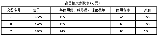 | 8.【案例1】 某工程需購置某設備一臺,經市場調查有三種型號設備滿足要求,相關參數如下表(采購當年貸款復利利率為8%): ![]() 問題: 對上述各方案進行列式計算比較,并選出正確的設備采購方案。 |