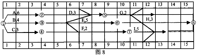 | 11.背景: 某工程承包商按照甲方代表批準的時標網絡計劃組織施工。 時標網絡計劃如下圖3所示,圖中箭線上方字母為工作名稱,數據為每周計劃費用。在工程進展到第6周末檢查的工程實際進度為:工作D完成了4/5工作量,工作E完成了1/3工作量,工作F完成了3/7的工作量。 在工程進展到第11周末檢查的工程實際進度為:工作G完成了1,2的工作量,工作H完成了,3的工作量,工作I完成了2/3的工作量。 ![]() 問題: (1)在圖中標出第6周末、第11周末的實際進度前鋒線。 (2)完成該項目第1周到第11周末費用數據統計表,其中已完工程實際費用累積值已給出,見表5。 ![]() (3)分析第6周末、第11周末的費用偏差及費用績效。 (4)分析第6周末、第1周末的進度偏差及進度績效。 |