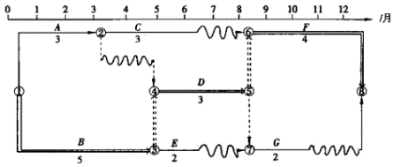 3.該工程的雙代號時標網絡計劃圖,如圖所示。