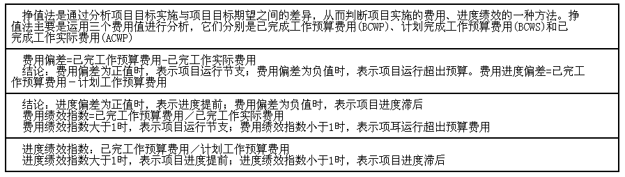 第10個月底,進度偏差=98-90=8萬元,即進度提前8萬元;進度績效=98/90=1.09,進度提前了9%。